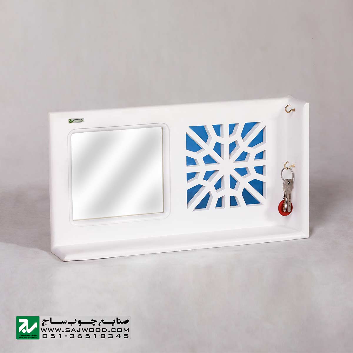 جا کلیدی دیواری با فضایی که برای آویز کلید دارد می تواند مکانی امن برای کلید هایمان باشد ، این محصول ایده آل با در نظر گرفتن بیشترین کارایی به عنوان شلف ، جا کلیدی ، طاقچه و آینه هنگام خروج از منزل و محل کار برای بررسی سریع و نهایی ظاهر و برداشتن کلید طراحی شده است.