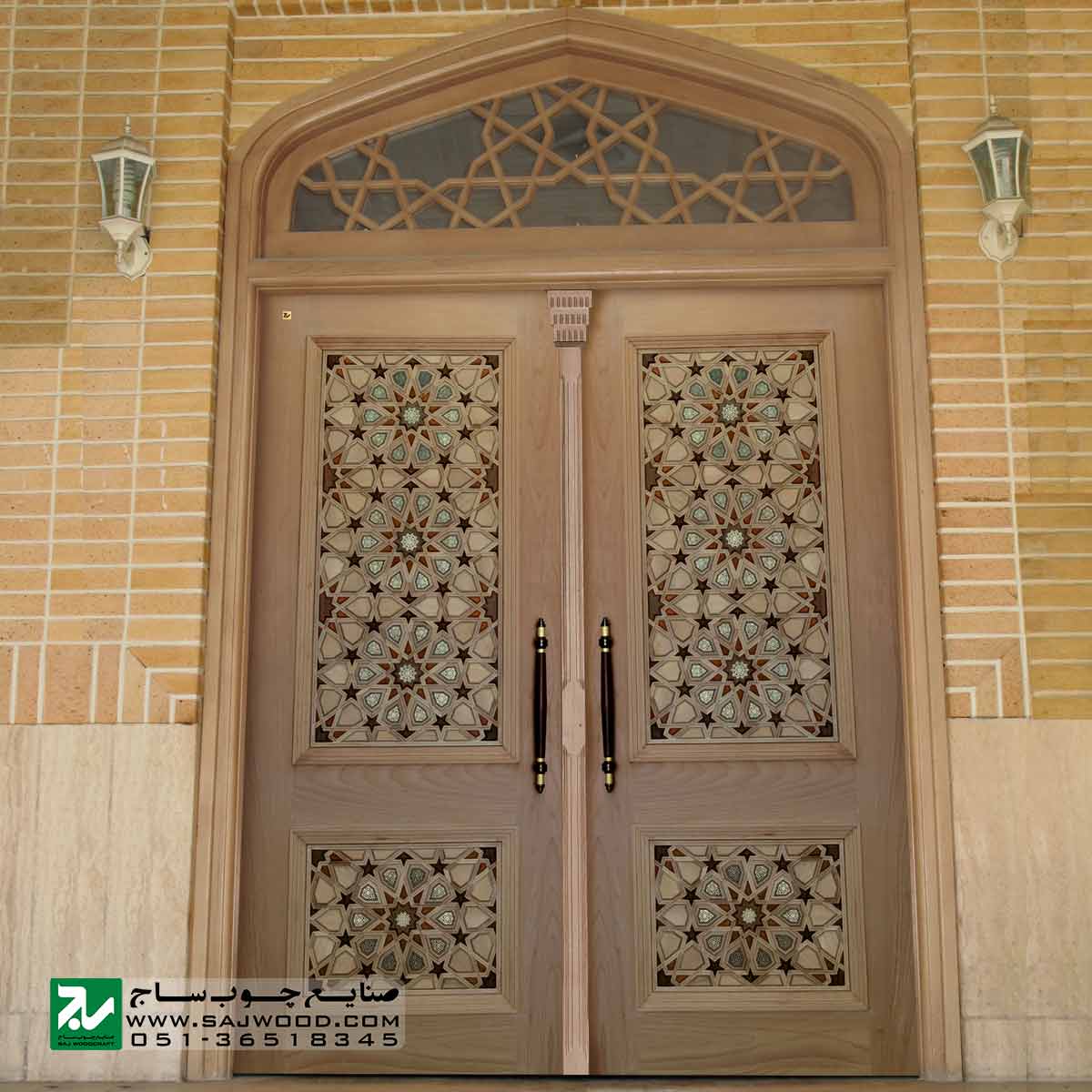 درب چوبی ورودی اماکن متبرکه ،مسجد صنایع چوب ساج مدل T10KH
