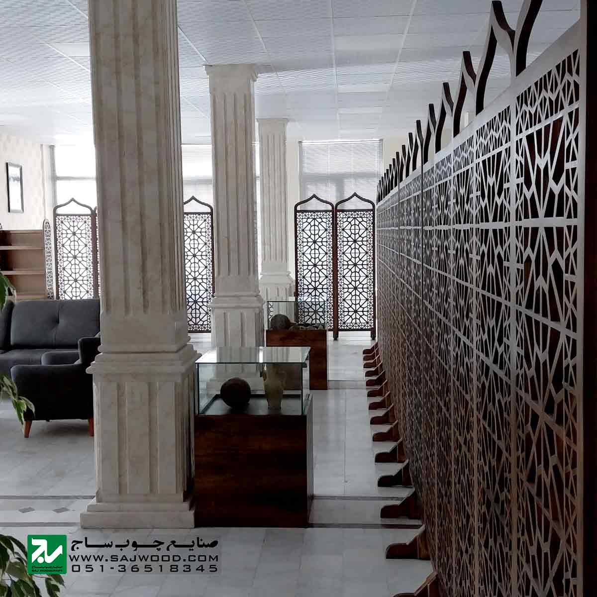 پارتیشن پاراوان شیشه رنگی چوبی سنتی متحرک صنایع چوب ساج مدل 507 – Sajwood Wooden partition Model 507